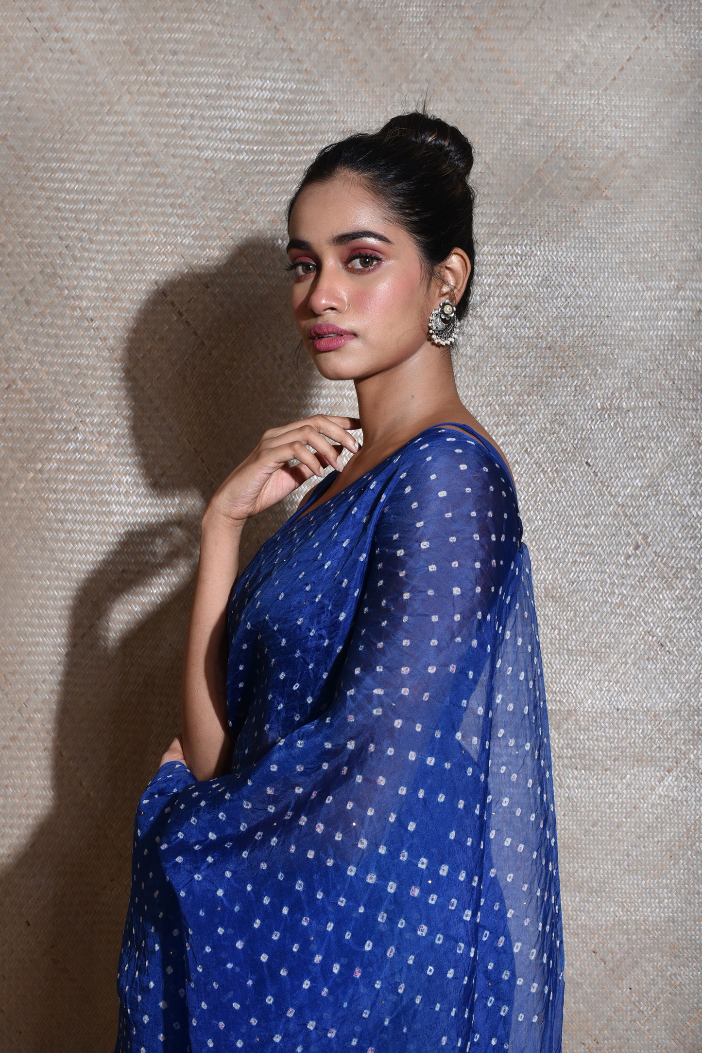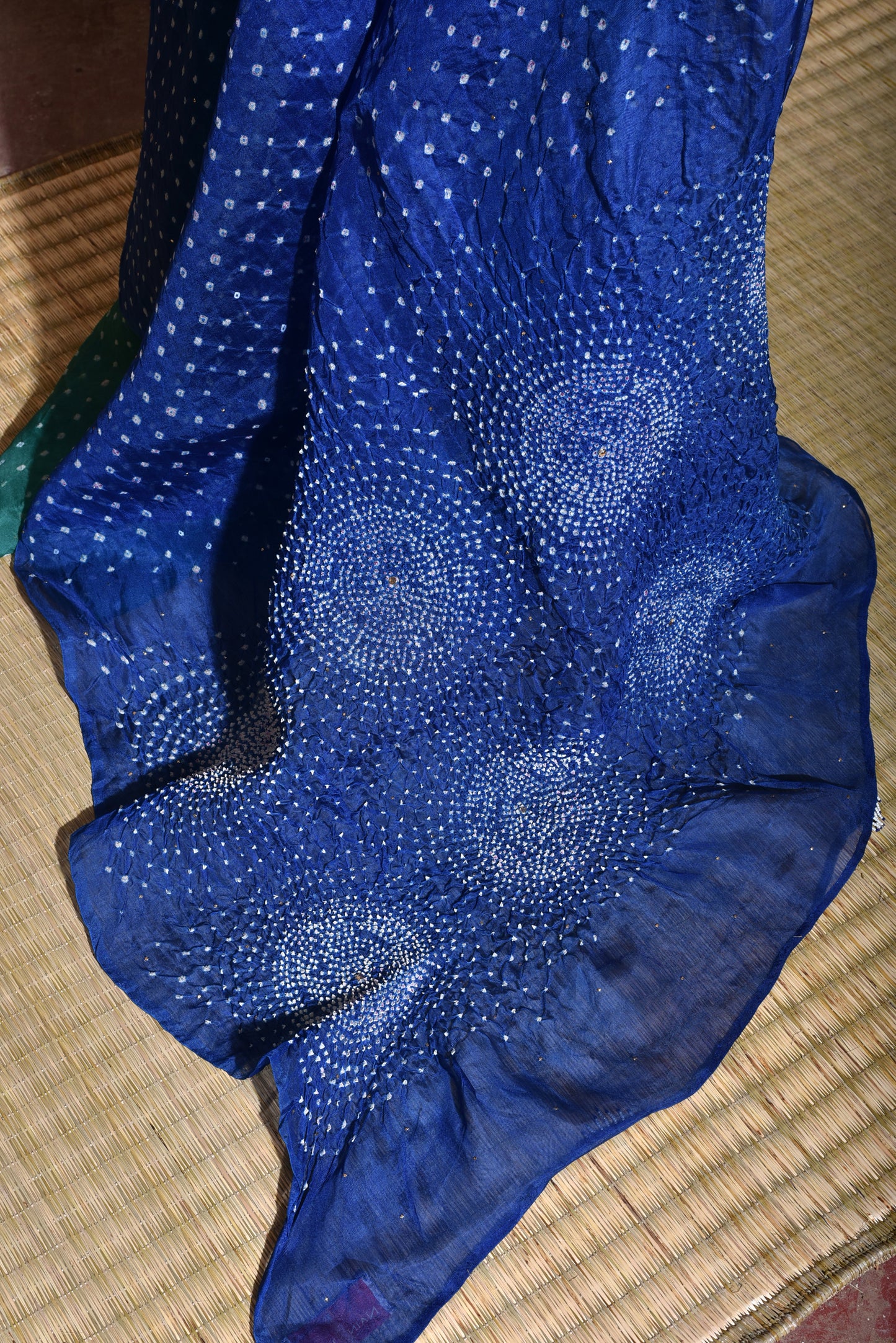 Bandhani on Organza Saree - Blue + Green