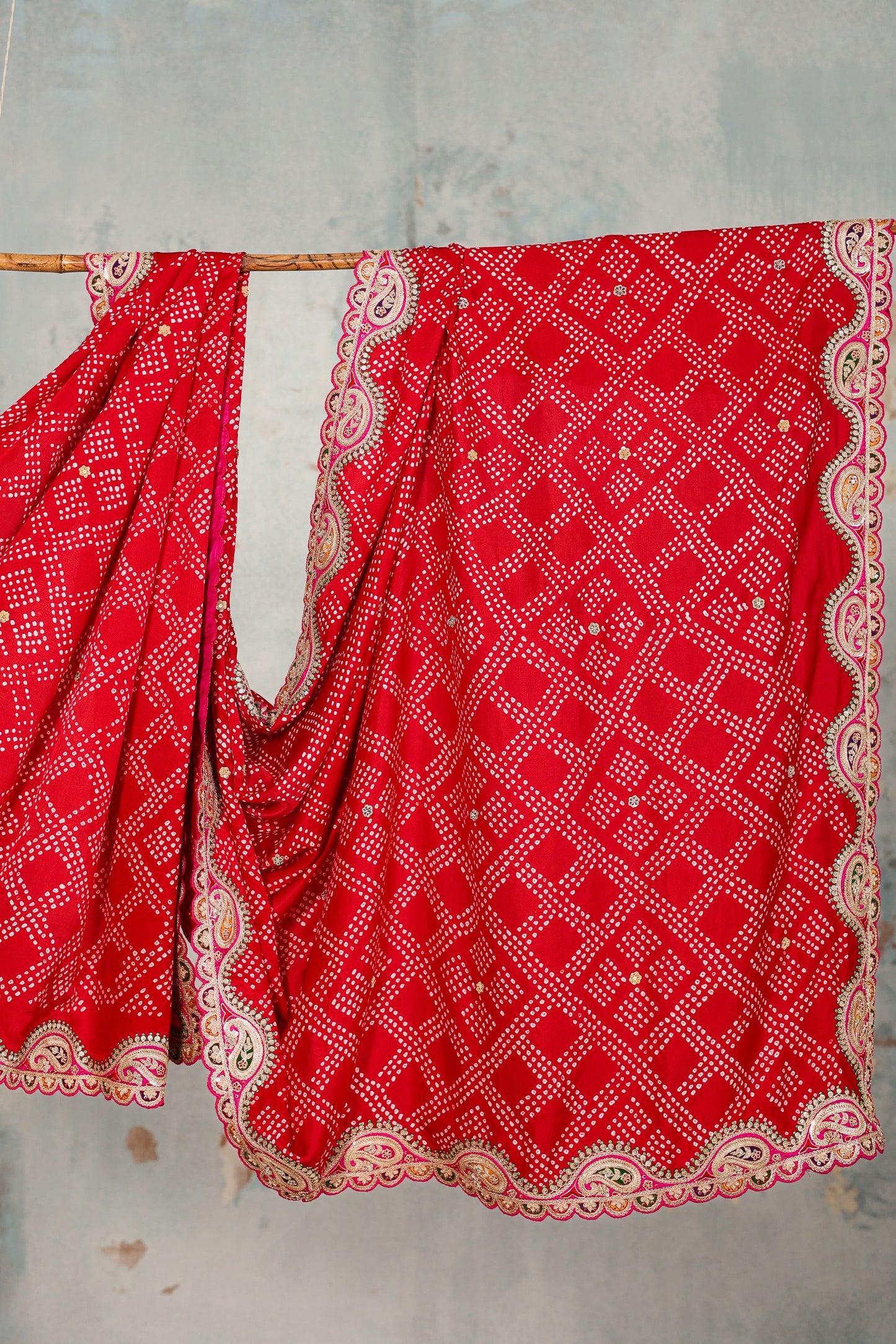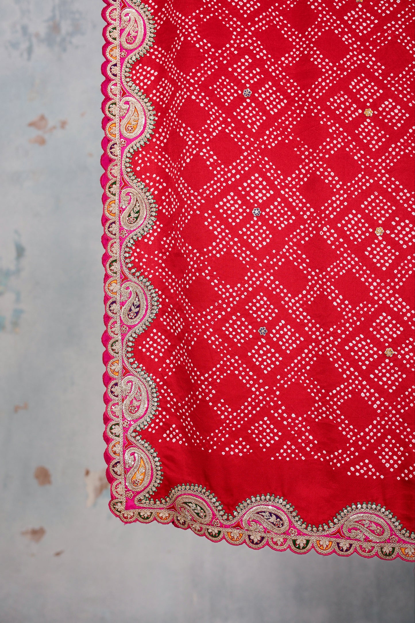 Zardozi Scalloped Gaji Bandhani Dupatta