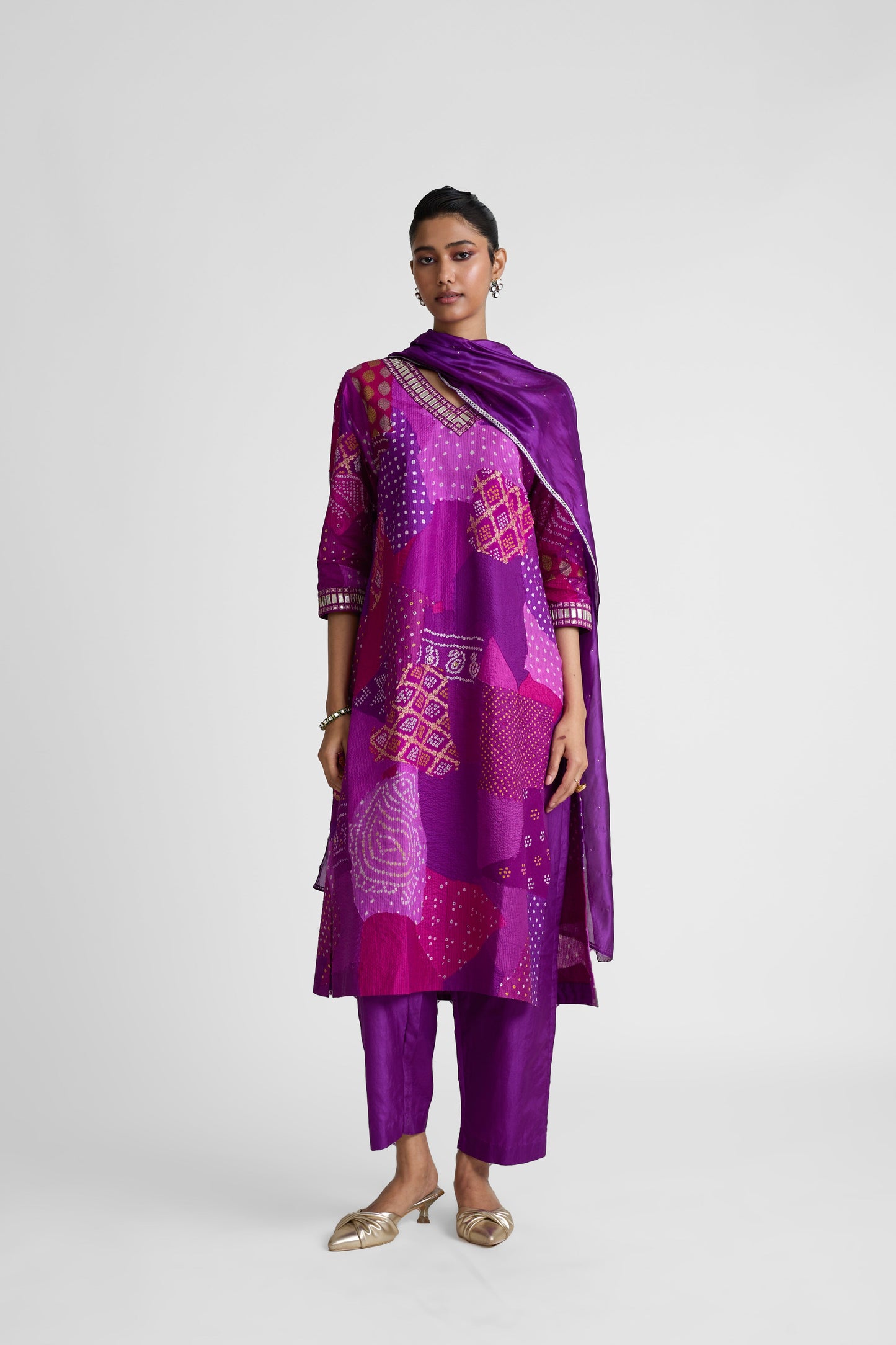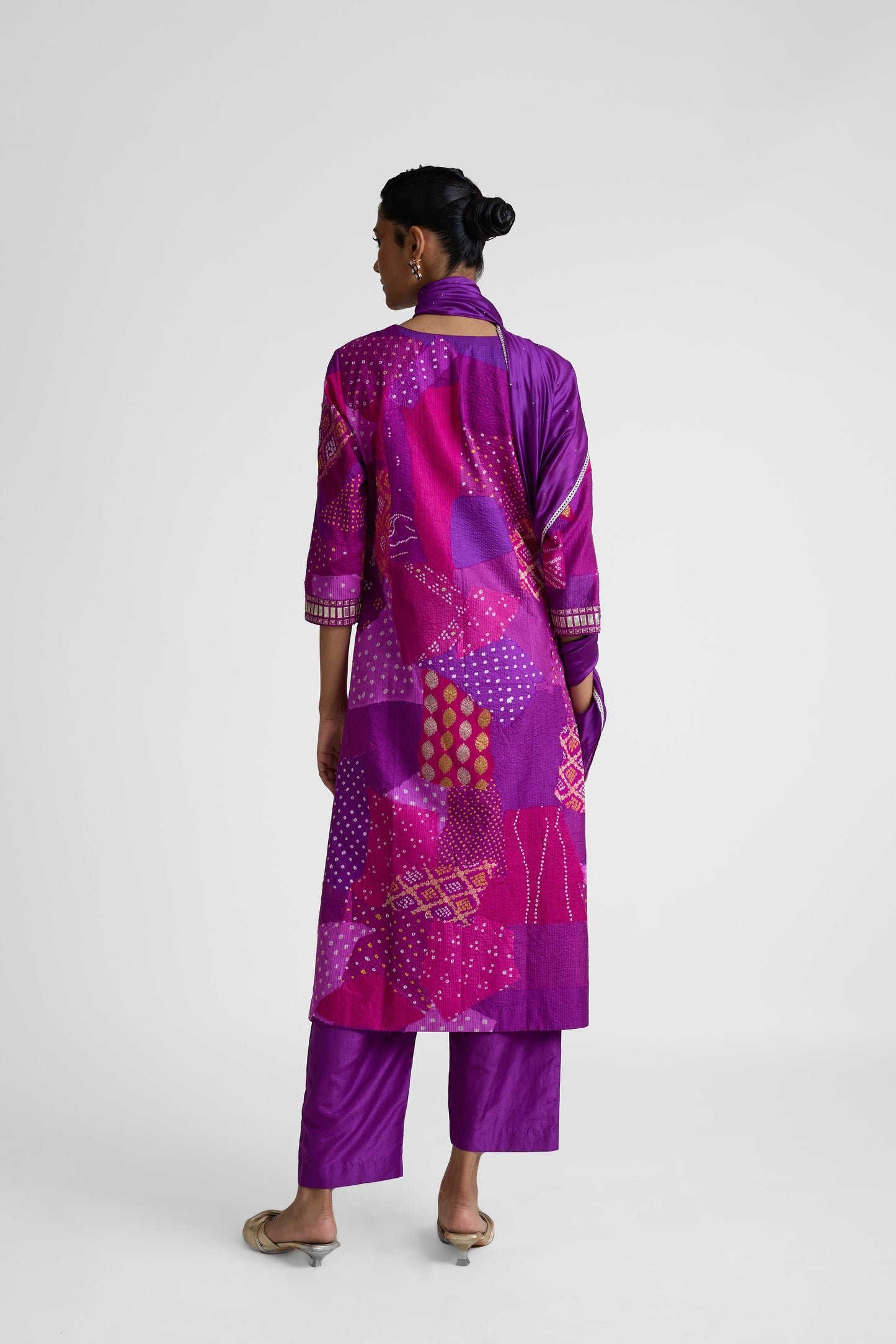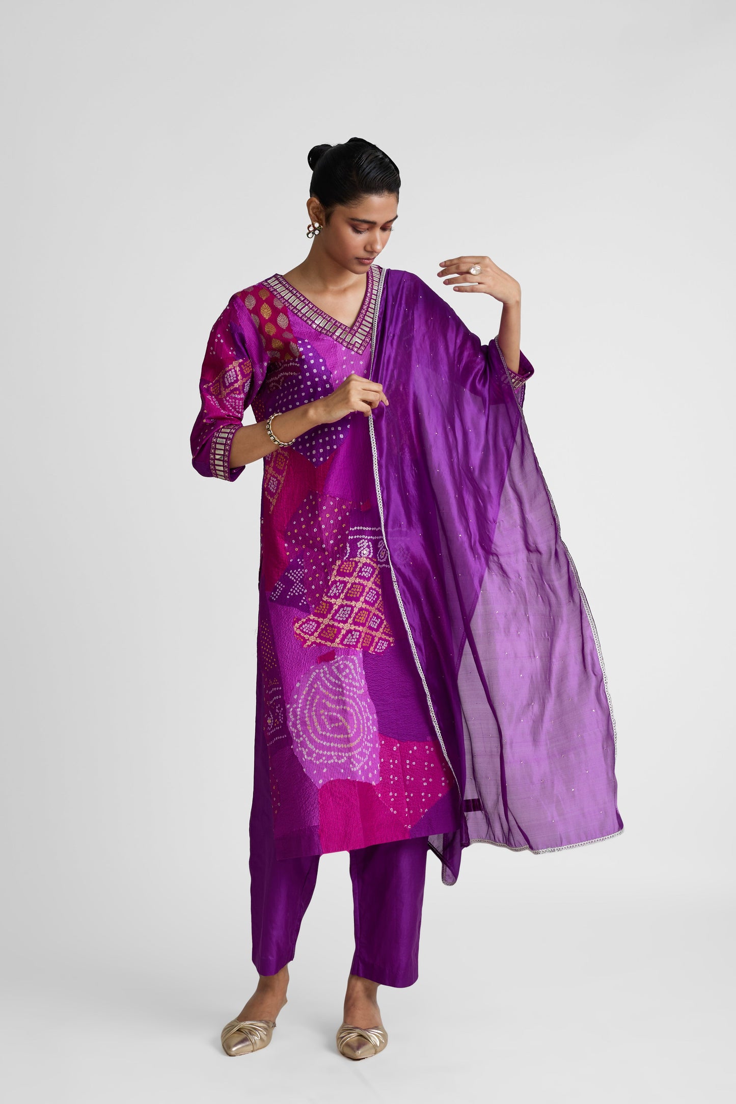 Please note that this kurta is made using patchwork Bandhani fabric. Hence, no two pieces are exactly the same due to the technique used. The final piece will be similar to the image, not same.