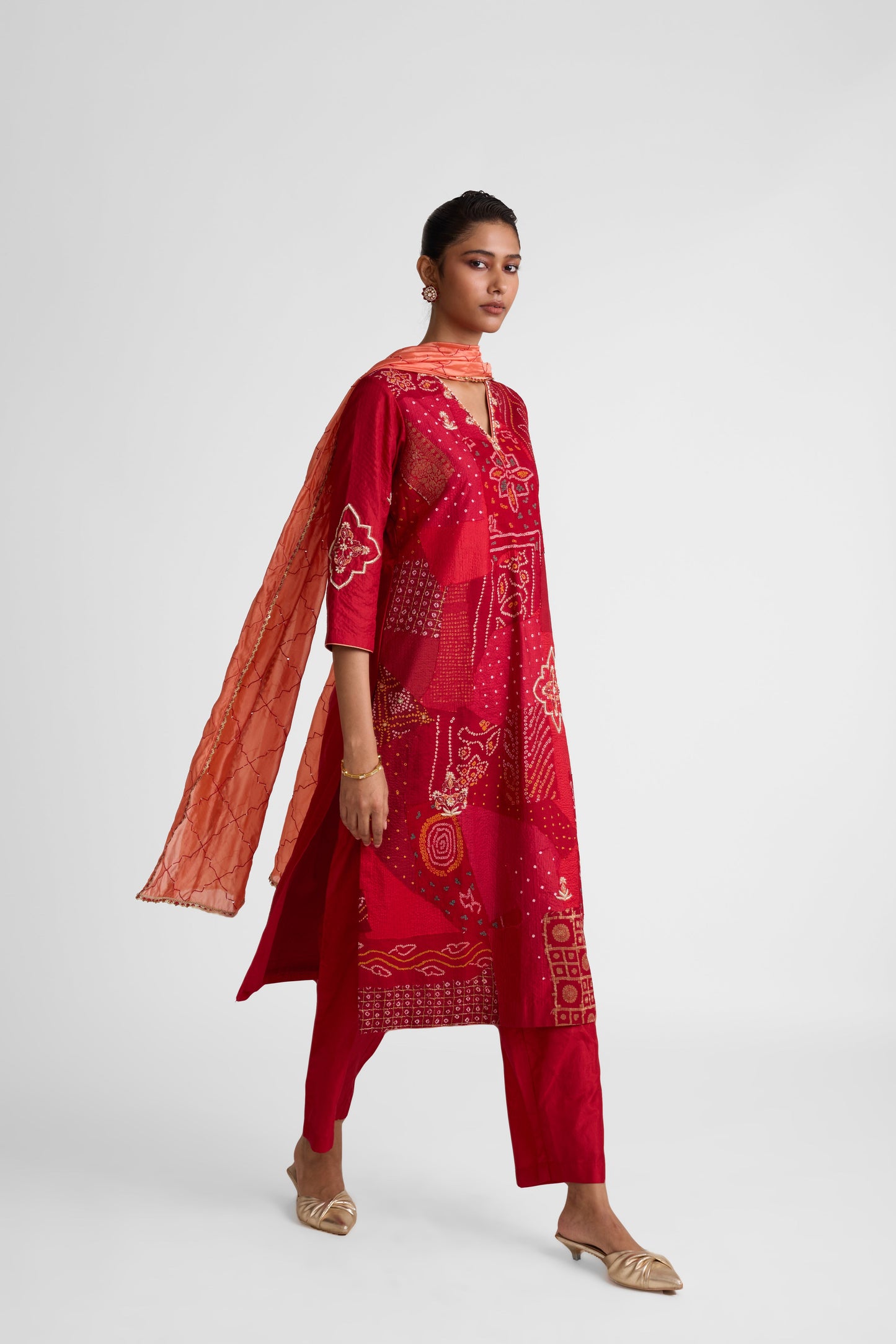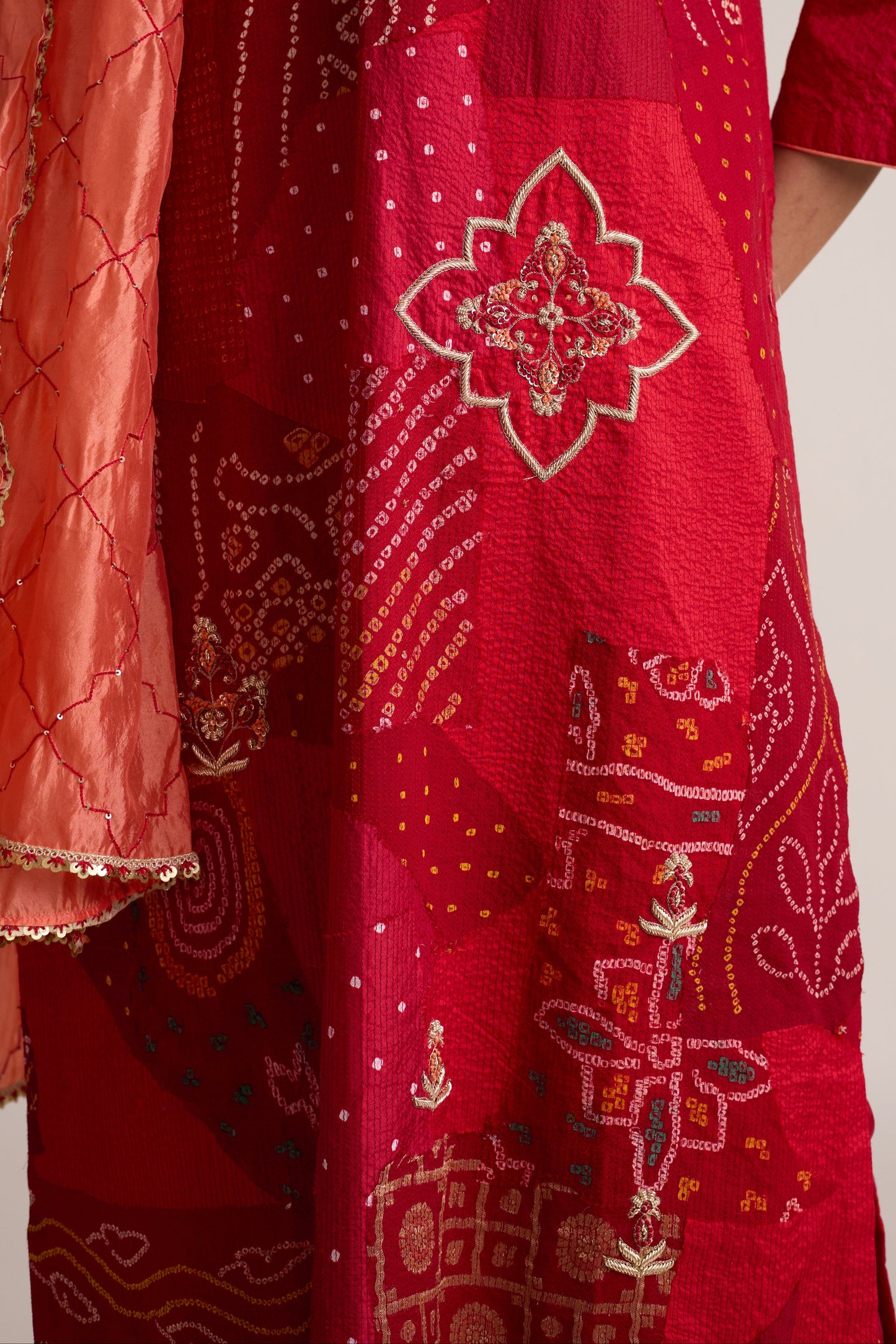 Please note that this kurta is made using patchwork Bandhani fabric. Hence, no two pieces are exactly the same due to the technique used. The final piece will be similar to the image, not same.