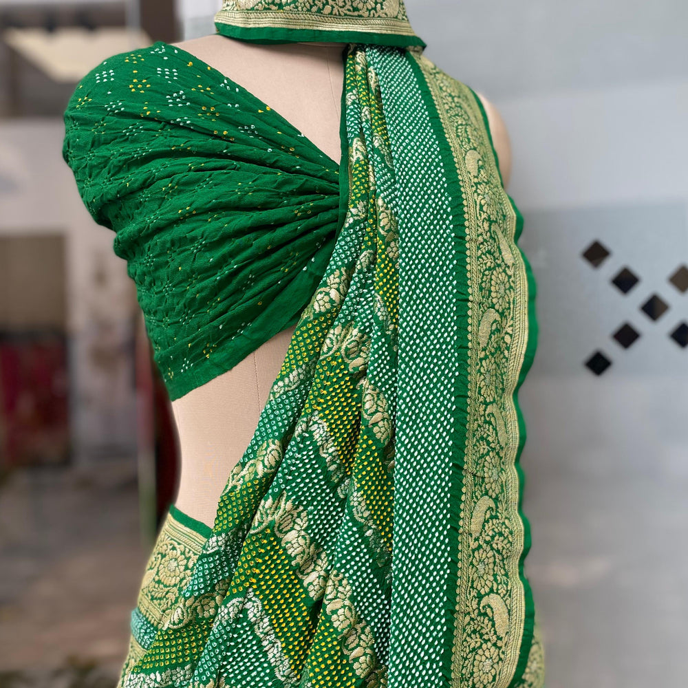 Light Meenakari Banarasi Bandhani Saree - Red Green