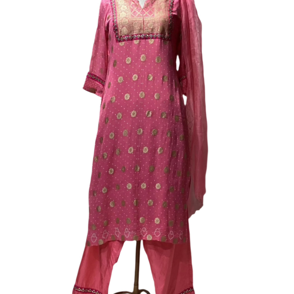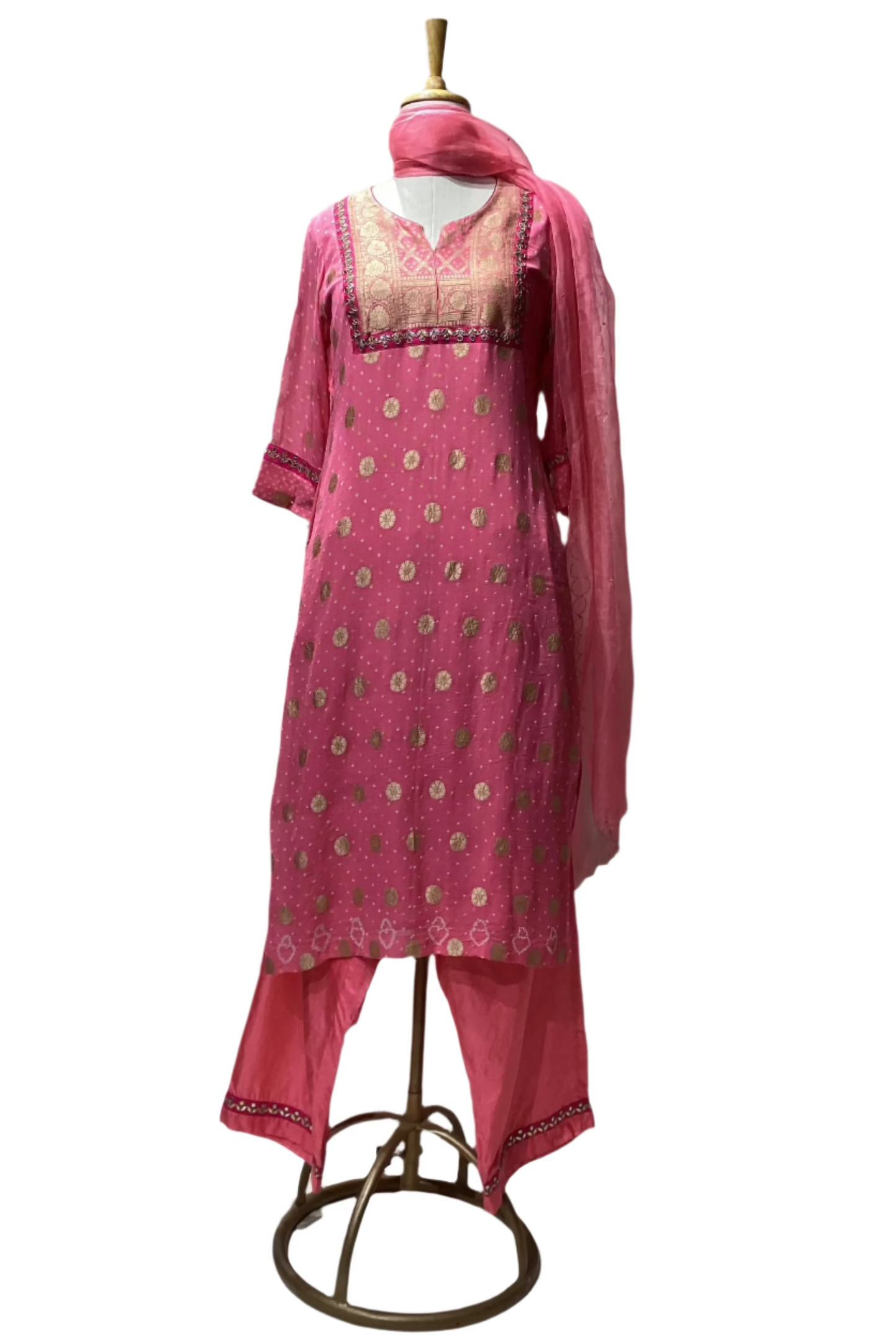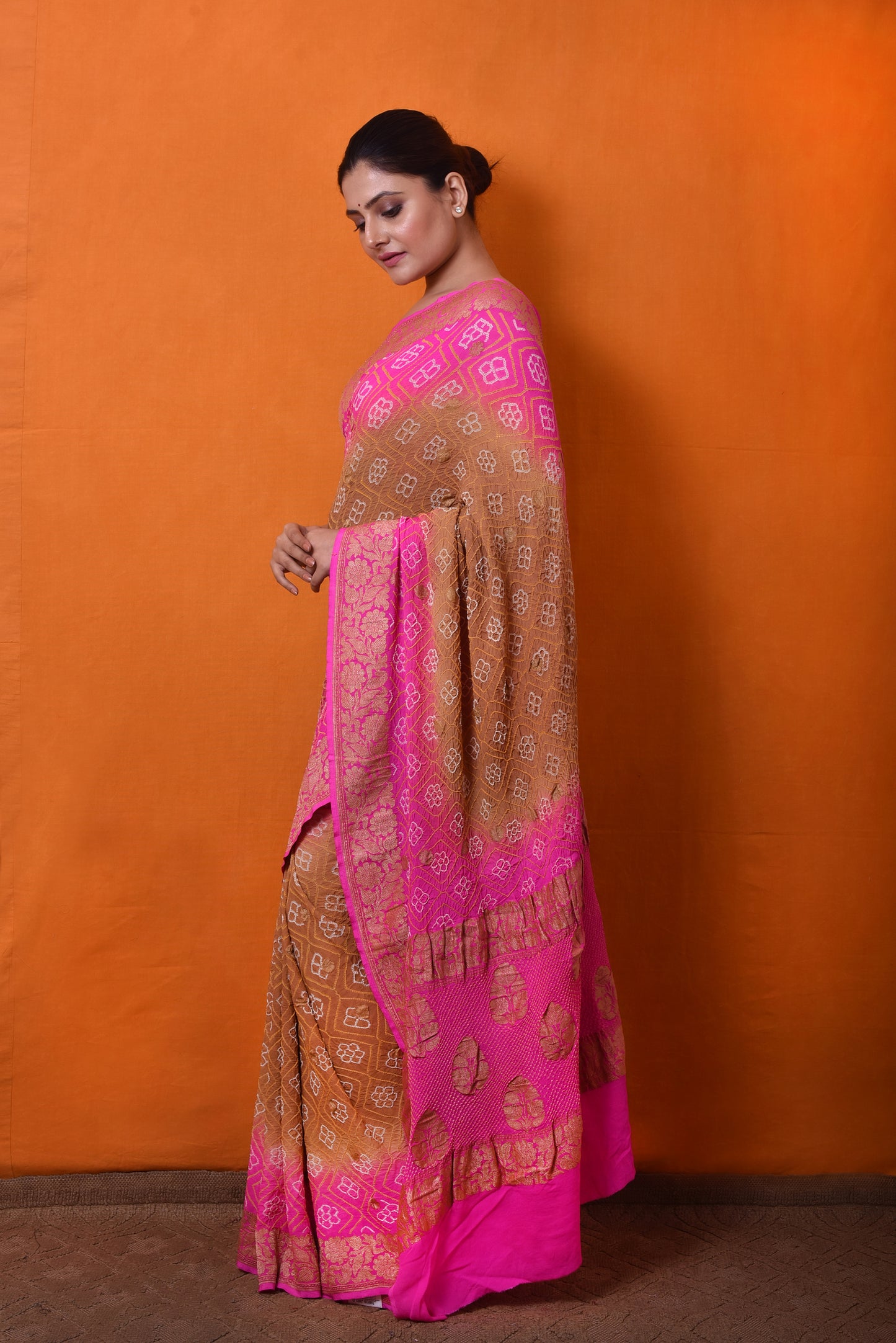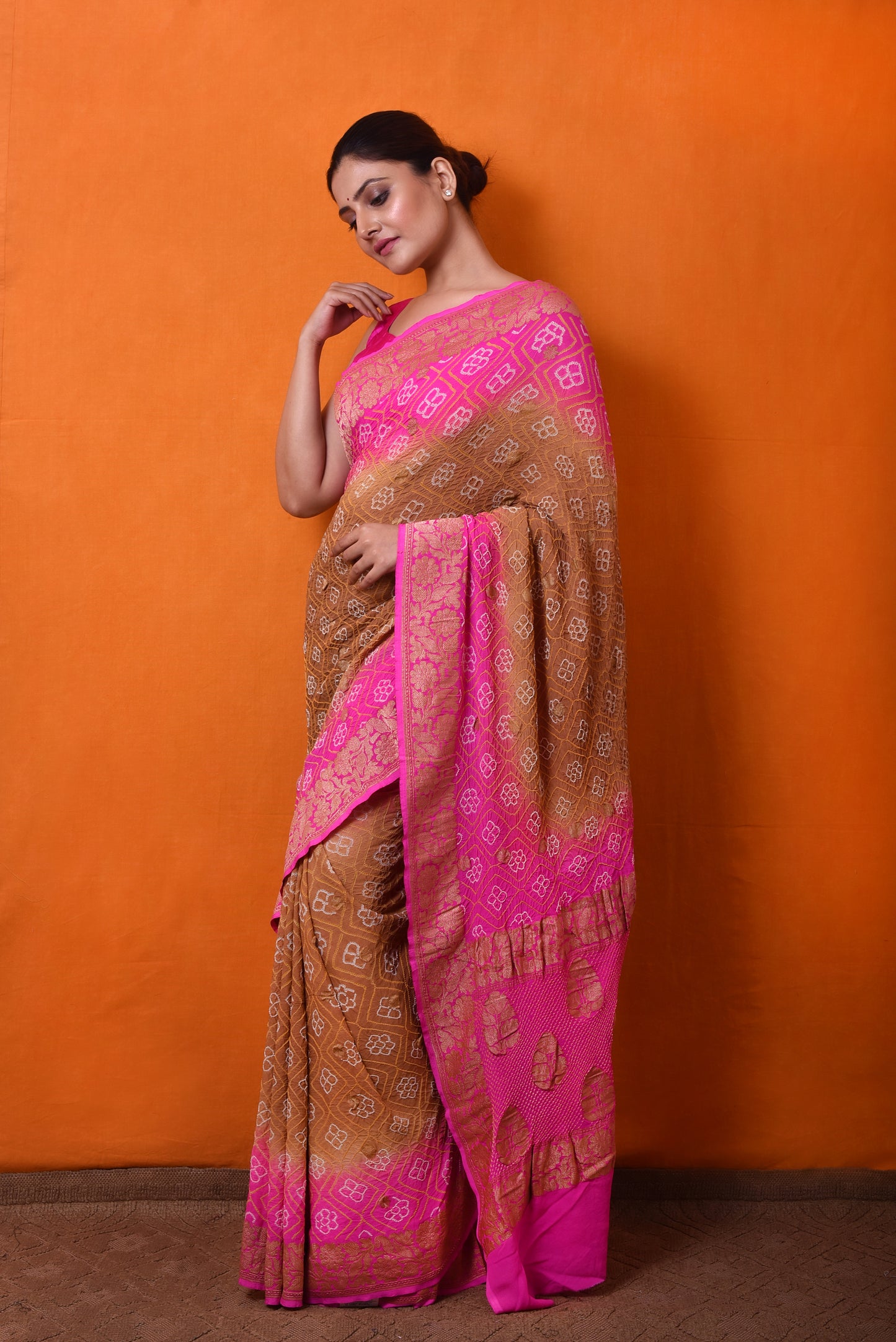 Pink Banarasi Bandhani Saree on Pure Georgette