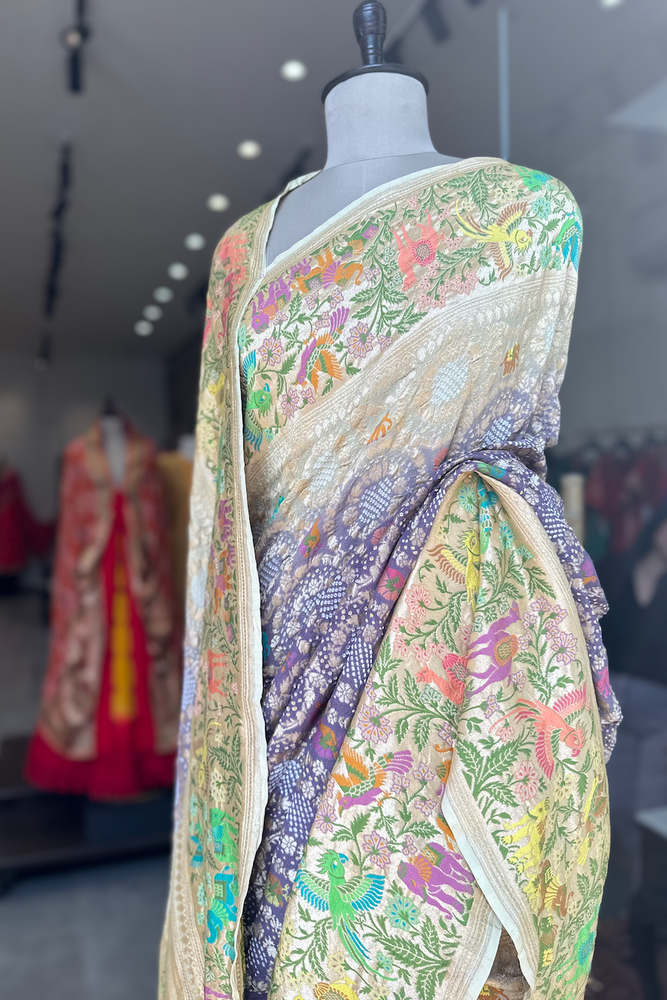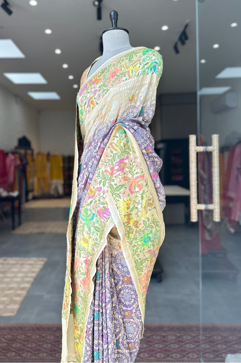 Broad Border Meenakari Banarasi Bandhani Saree - Purple