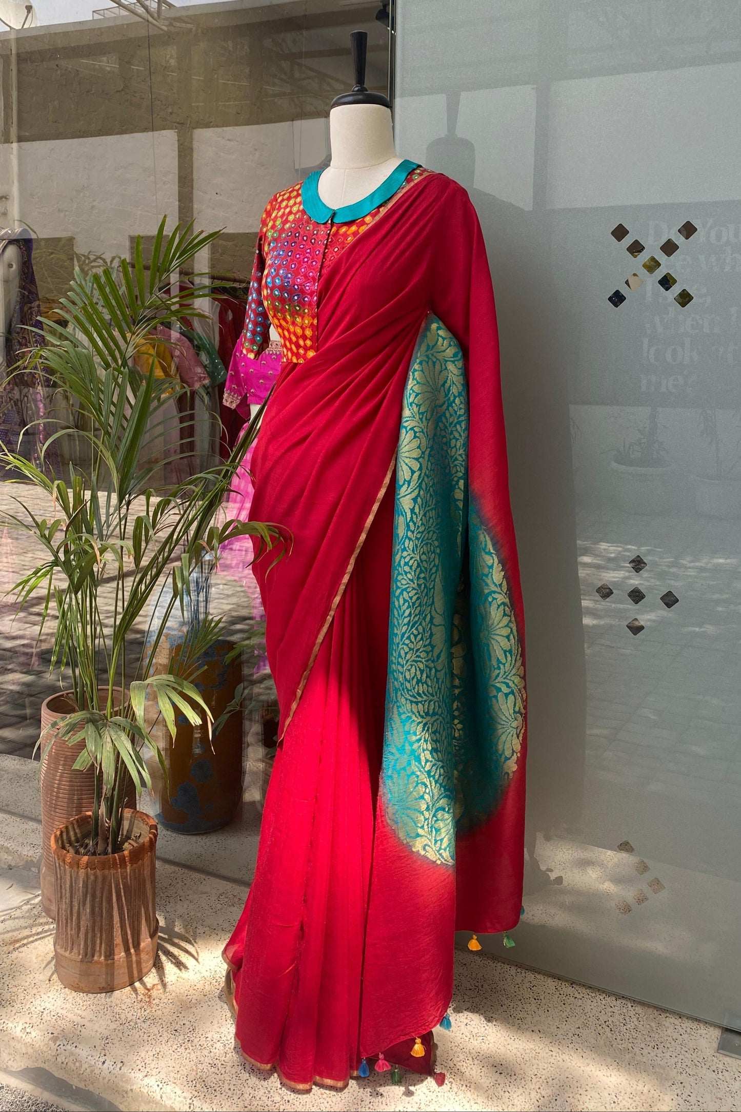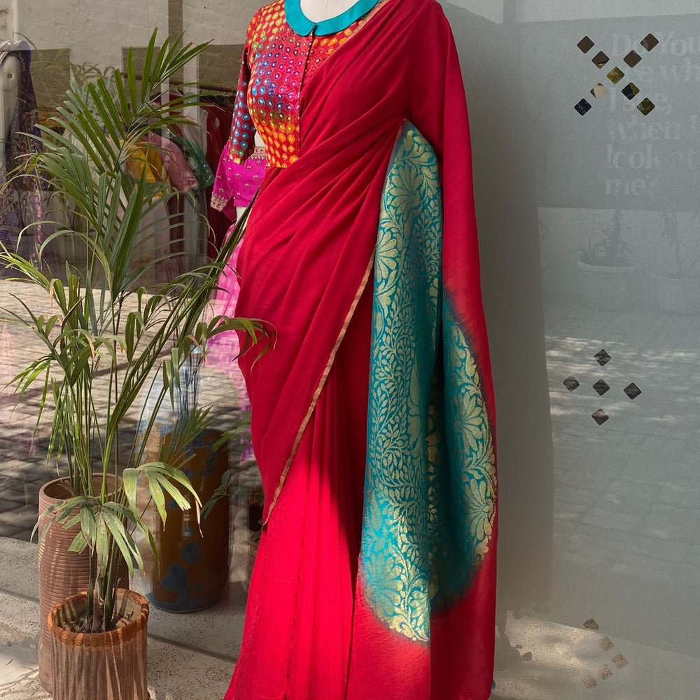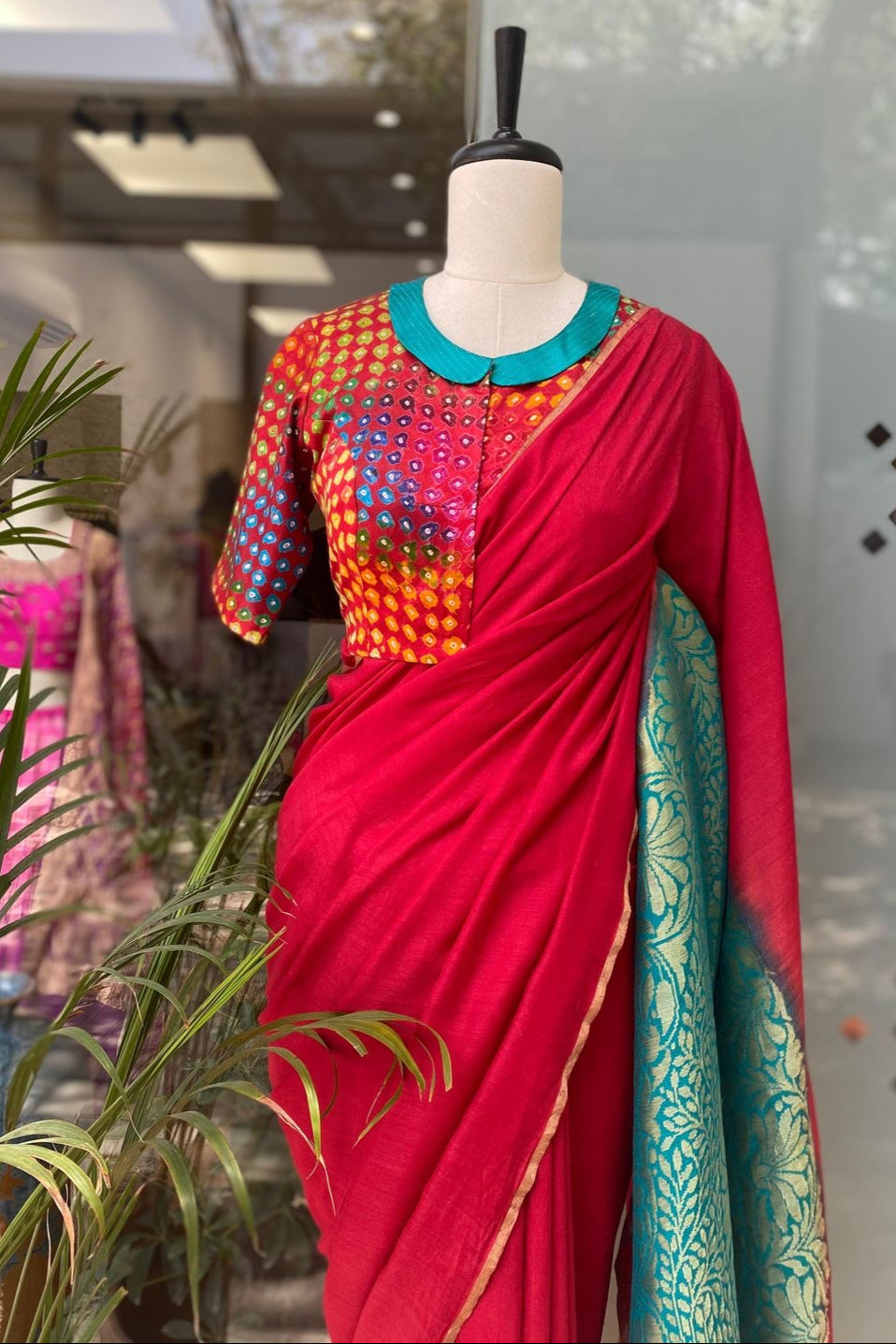 Bandhani on Pure Organza Saree with Pattern on Pallu