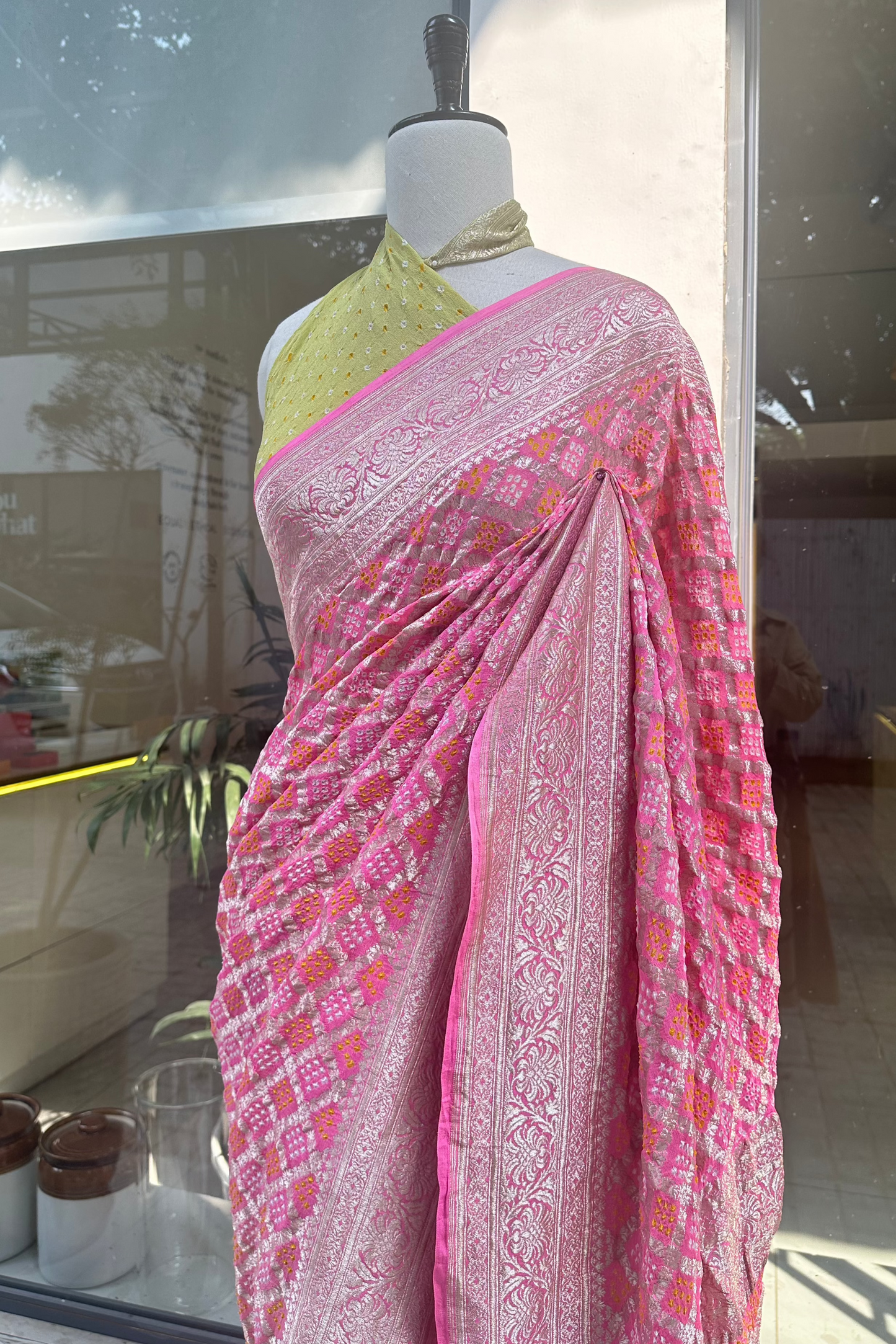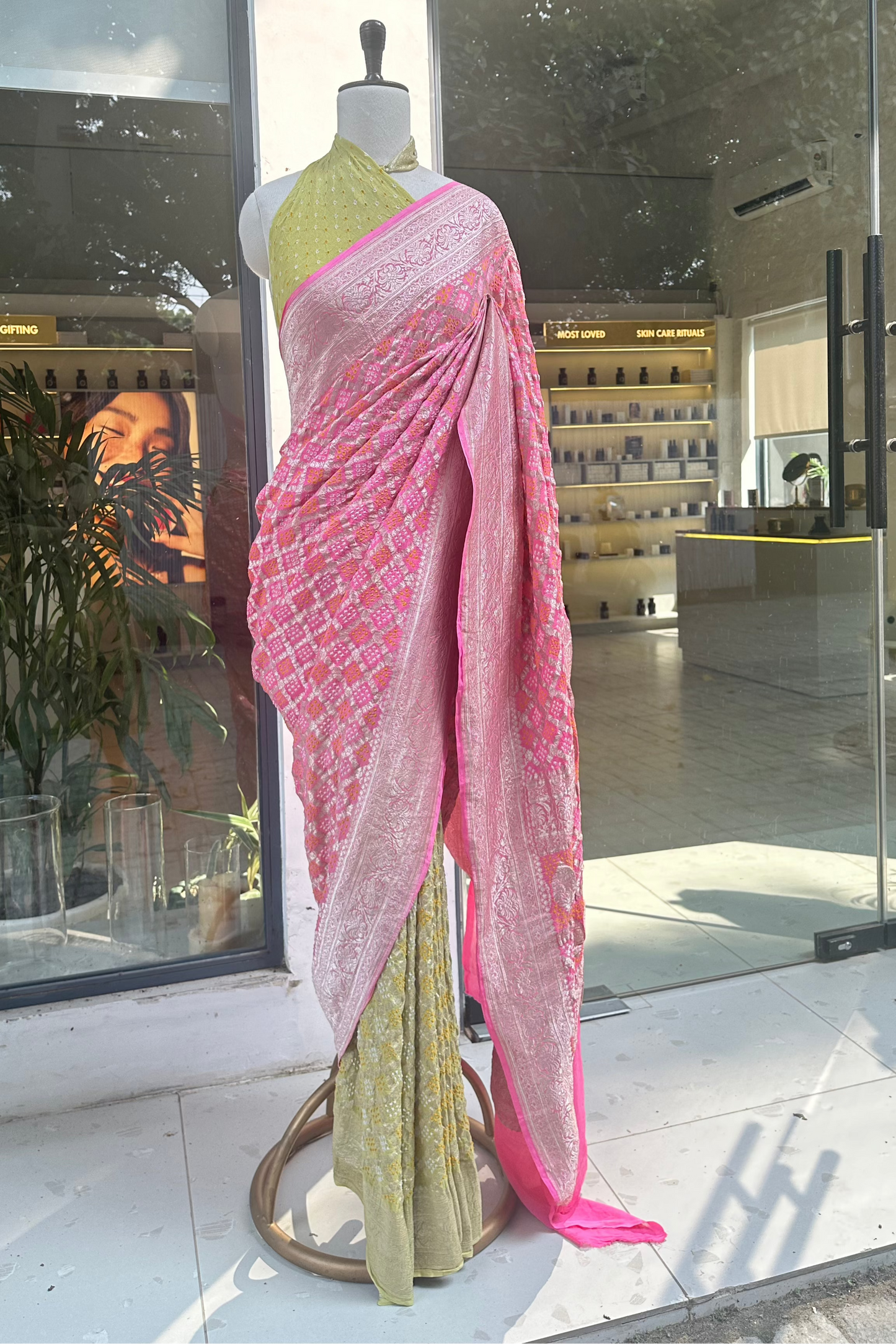 Shaded Organza Saree with Bandhani Blouse - Pink