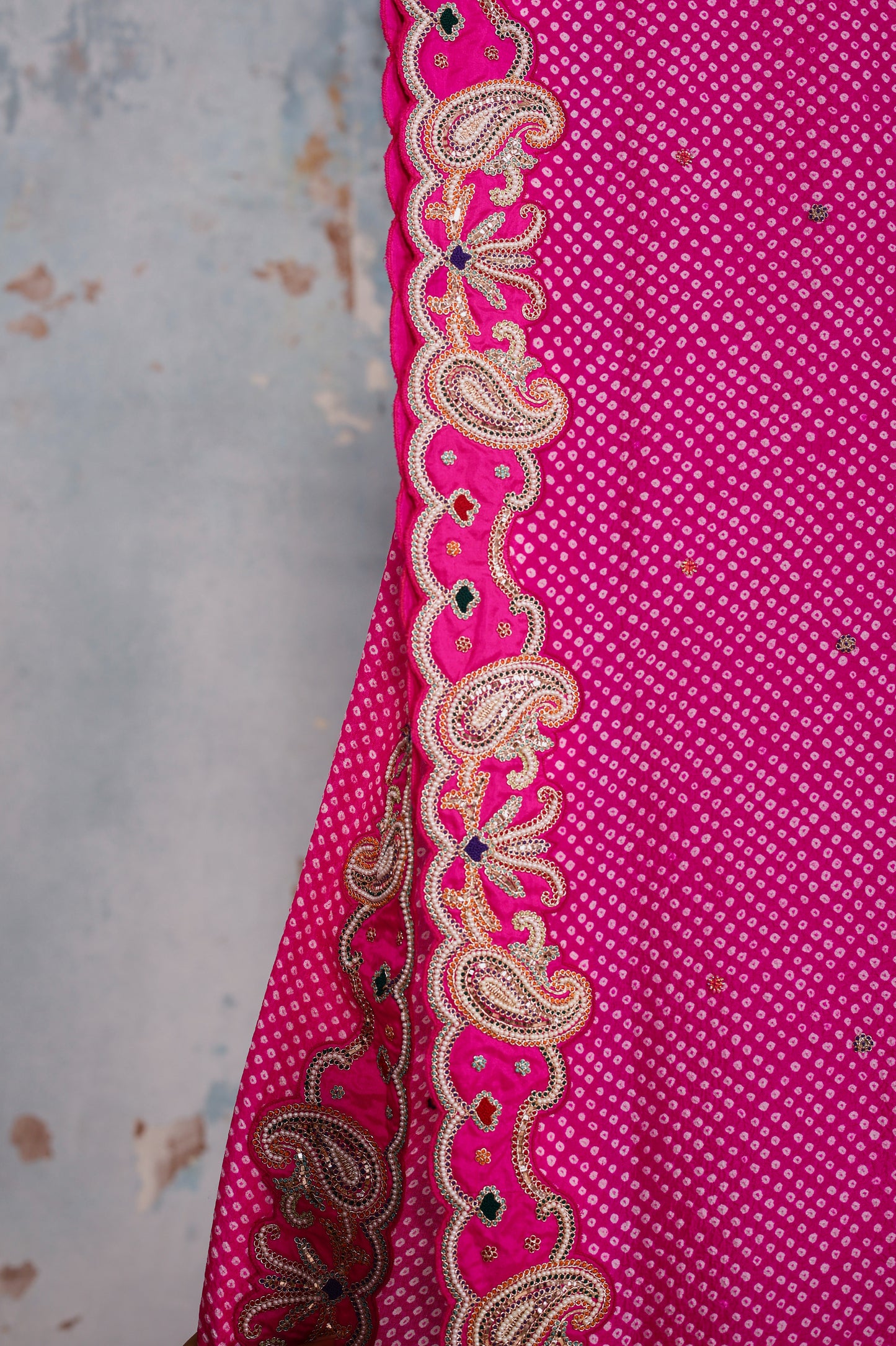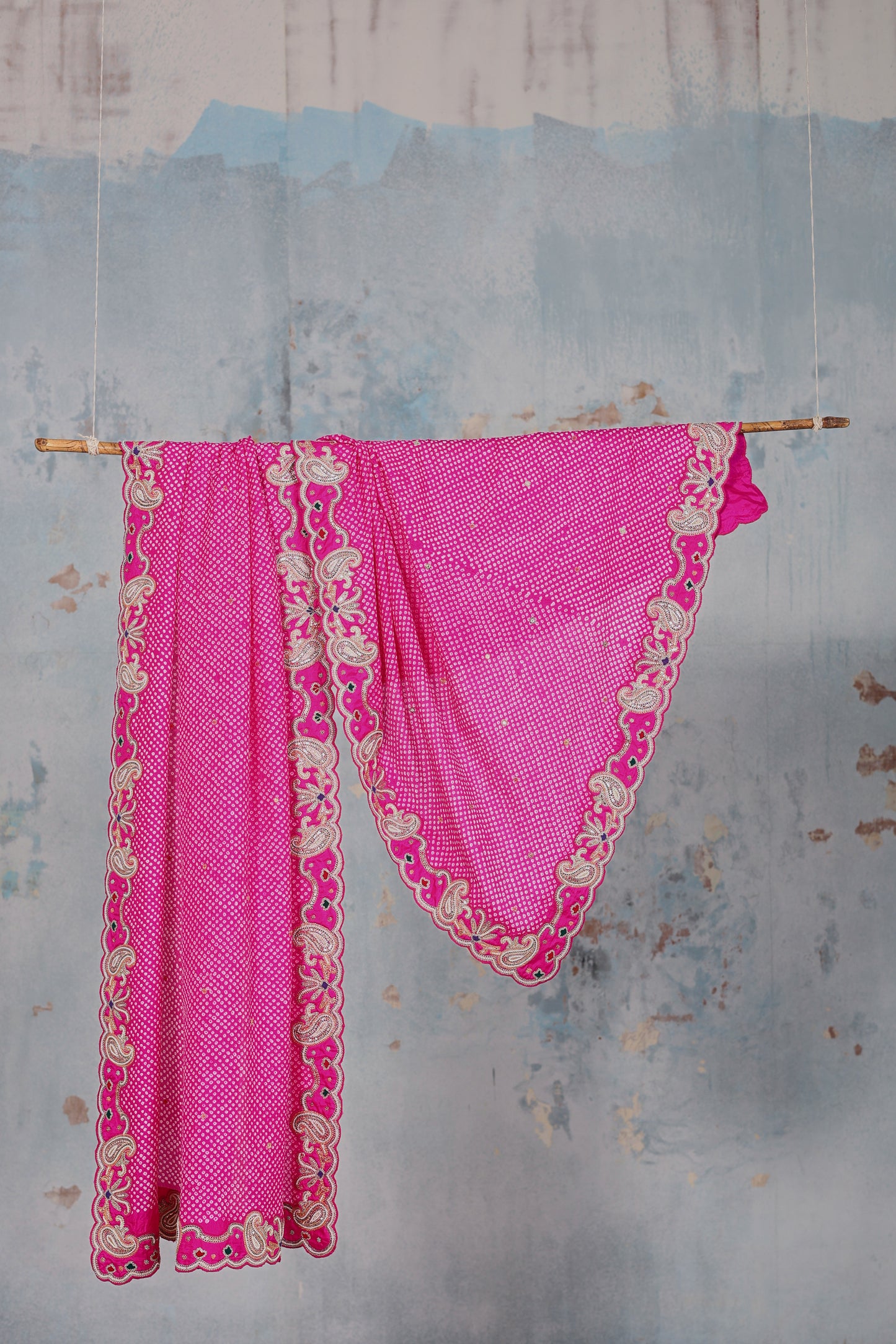 Bandhani on Silk Dupatta with Embroidery - Rani