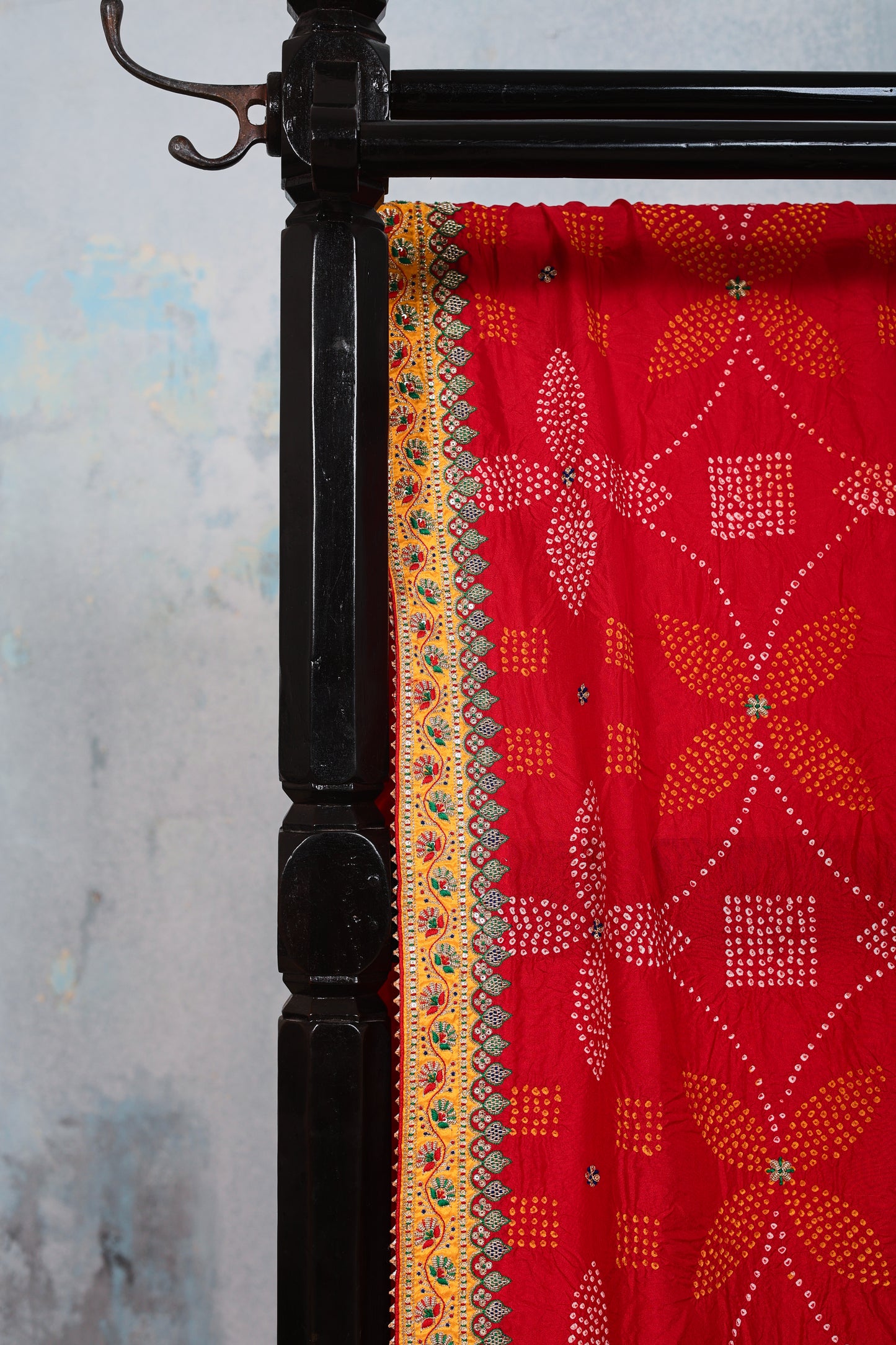 Silk Bandhani Dupatta with Embroidery